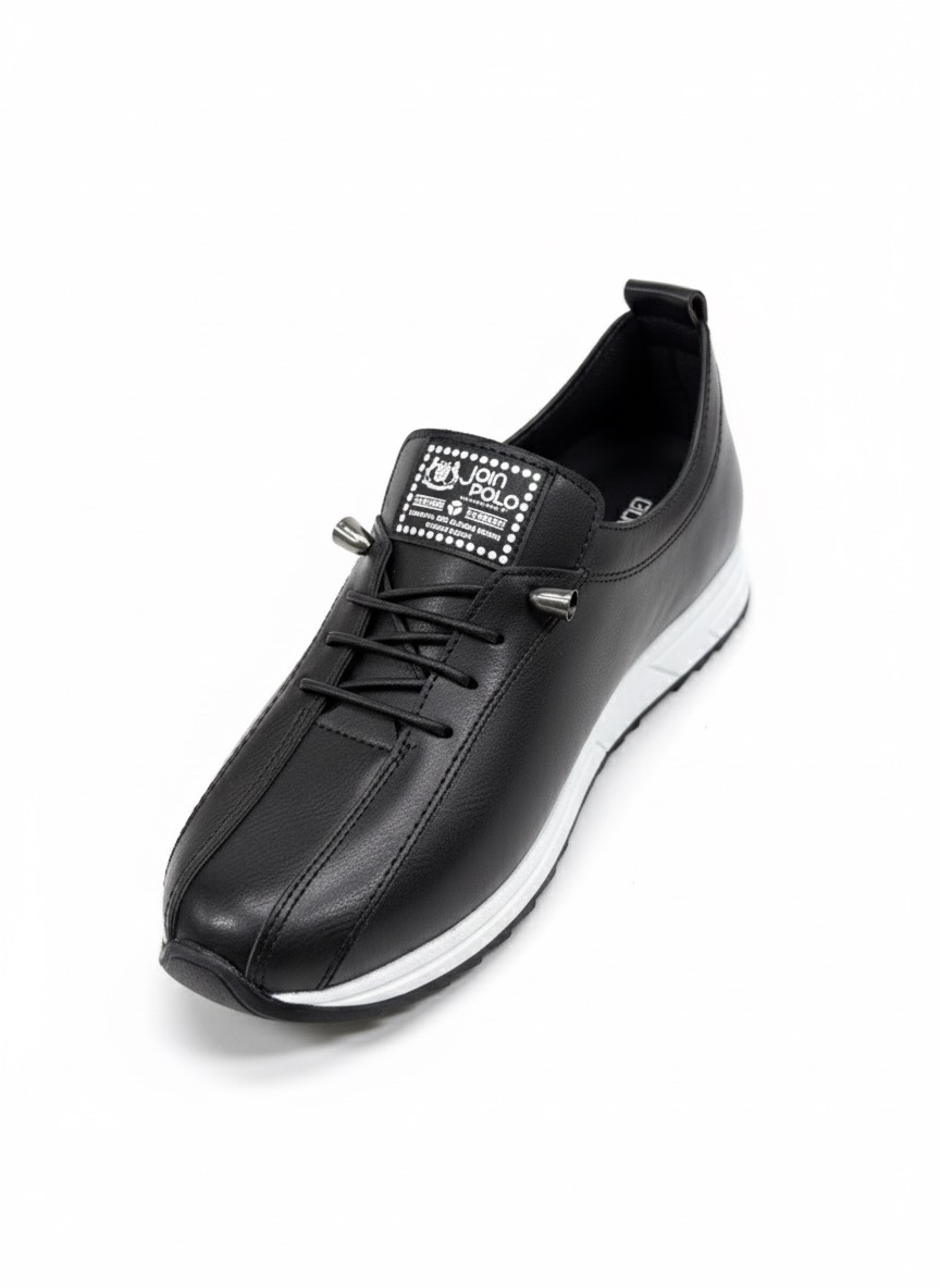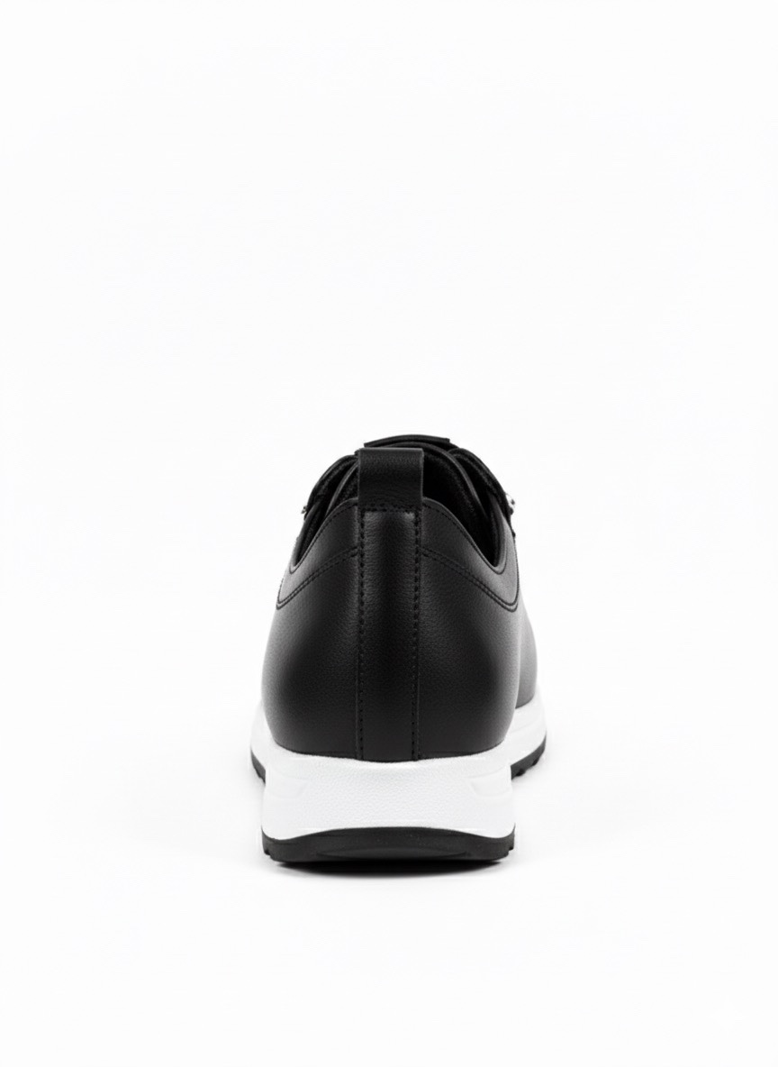 Gardırobunuzun en çok yönlü parçası olmaya aday bu siyah vegan deri sneaker ile konfor ve stili bir arada yaşayın. Klasik siyah suni deri üst kısmı, ayakkabının modern görünümünü pekiştirirken, keskin beyaz platform taban detayıyla spor şıklığı zirveye taşıyor. Yüksek kaliteli PU malzemesi sayesinde kolay temizlenir ve uzun ömürlü bir kullanım sunar.